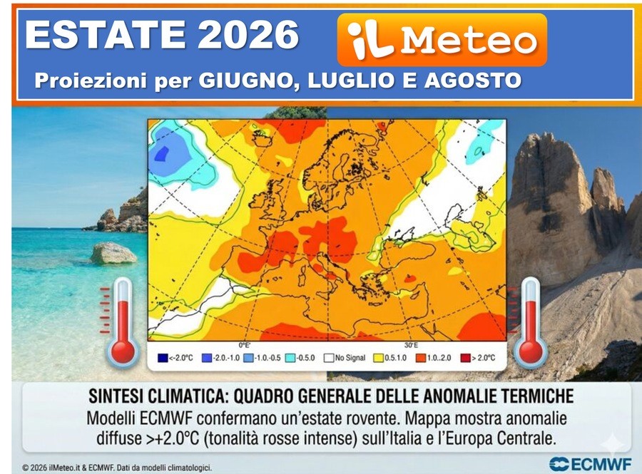 Estate 2026: sono arrivate le proiezioni del Centro Europeo per Giugno, Luglio e Agosto.Come di consueto, è bene ricordare che le... Leggi la notizia completa su iLMeteo.it